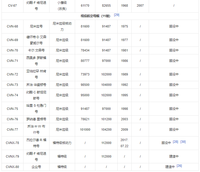 据公开资料,截止目前,美国航母(美国航空母舰)在役舰数11艘,在建舰数2艘。